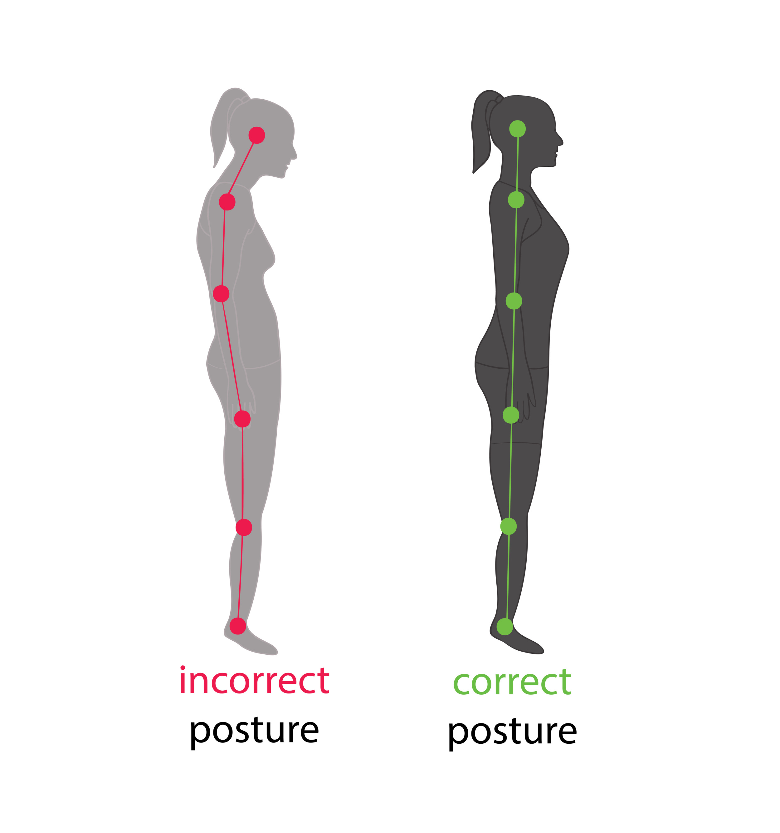 おなかを軽く引き締めて、胸を張って、顎を引いて歩くと良い姿勢になります。